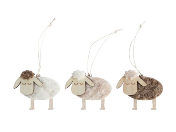 Holz-Filz Schaf zum Hängen, sort. x3